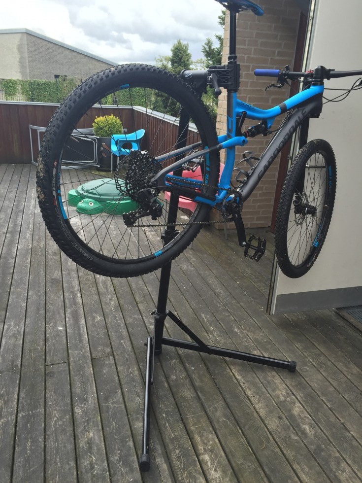 De sidste par år har jeg haft en god arbejdsstand, som jeg mente dækkede mit behov fint. Den har tjent mig godt, men da jeg fik Reverb’en monteret på min nye ged, var det eneste problem at kæberne var en anelse for høje til at gabe over det nederste stykke af Reverb’en, hvor man kan spænde et stativ fast. What do do? Ind og se hvad der så kunne findes af alternativer. Jeg skal være den første til at indrømme at det selvfølgelig kunne være superdejligt med et Park stativ. Det er proffernes førstevalg, men det er også prismæssigt tæt på et weekendophold med kæresten. Det ville også være fedt at opgraderingen havde en form for quick release, som alle der har stået og holdt cyklen i én hånd nok har drømt om. Løsningen kom lidt af sig selv. Var forbi allbike.dk for at købe lidt sliddele, og så at de havde fået et nyt produkt: Contec Rock Steady – et værkstedsstativ/arbejdsstand som på papireret kunne det jeg ville, havde kortere kæbegreb, quick releases, fremadvendte ben (stikker ikke bagud) og en ok pris: DKK 675,-. Det lød jo næste for godt til at være sandt, så det var med spænding at jeg ventede på posten, for hvad var det jeg havde bestilt – ville den leve op til forventningen. Ventetiden var kort, det er en væsentlig fordel at handle steder hvor det går hurtigt, og der har allbike.dk endnu ikke skuffet.