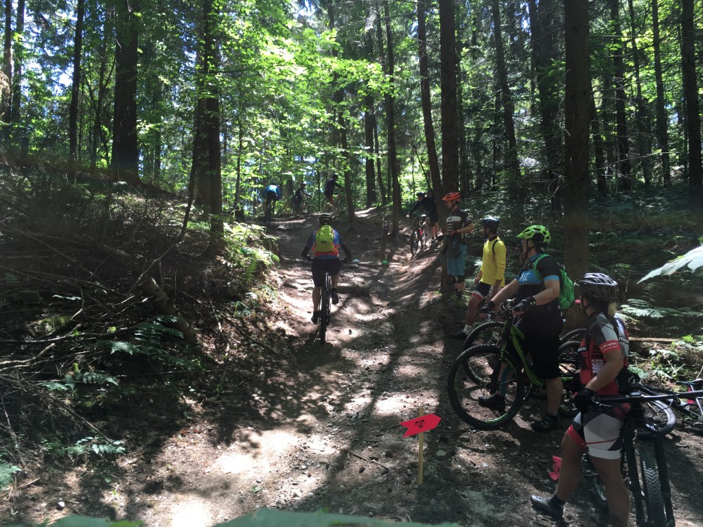 Når man er på sporet med piger og drenge, og alt går i de høje nagler, så prøv engang i mellem at stoppe op. Måske der hvor det naturligt sker, og flere af os enten humper os igennem, eller måske lige frem står af for at trække. Her vil det nemlig give rigtig god mening at tage en af dagens pauser, og bruge den aktivt til at lære af andre, og både give og modtage konstruktiv feedback. Det optimale er selvfølgelig hvis en eller flere i gruppen har nogenlunde styr på basis, og kan guide de andre. Vis hvordan sektionen kan køres. Prøv at gå den igennem, og tal om hvor den gode linje er. Hvordan man holder flow, hvor man vil køre ind og ud, og hvor fokus er, nemlig ved at kigge frem i sporet, og ikke direkte ned i den store sten, eller på de glatte rødder. Prøv at køre det. Hold fokus. Giv feedback. Motivér og bak op. Det er den suverænt bedste måde at lære på, og gør det måske et par gange i løbet af jeres træning. Aftal evt. efter en gennemkørsel hvor det giver mening at holde fokus, og prøv Jer lidt frem. Det kan godt være at alle ikke er med første gang, men når du har set det nogle gange, opnås efterhånden en tryghed, og en lyst til selv at prøve det – og husk så den FEDE følelse det er, når det lykkes!