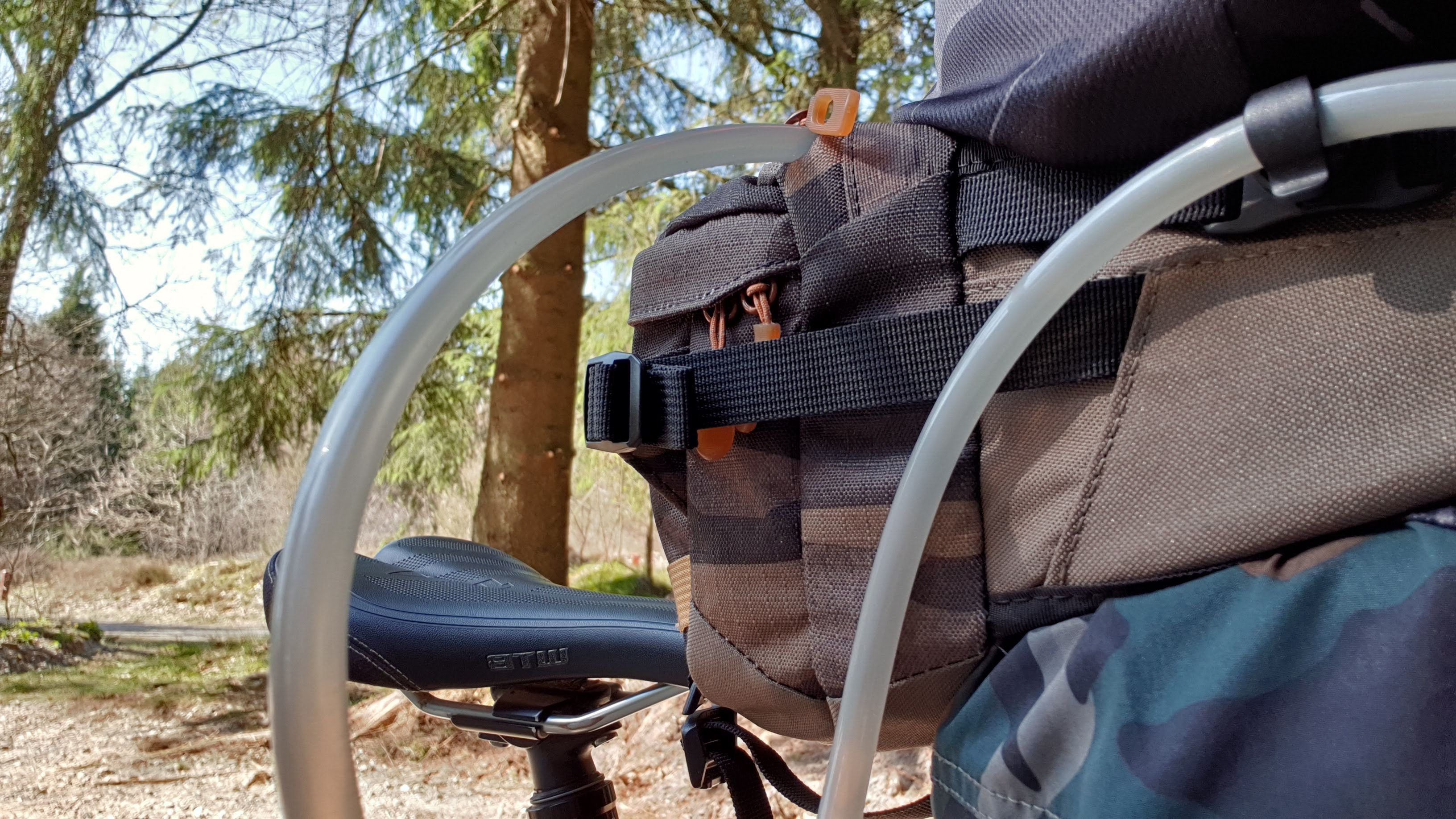 Tasken har både været med på tekniske spor med masser af rødder, og også været afprøvet på lange XC ture. Både når det er bumpy og ved statisk aktivitet, sidder den godt, og generer ikke mig. I forhold til fx Camelbak, synes jeg også at den sidder ret stabilt, og bliver hvor den skal være, uden at dingle rundt. Den slår ikke USWE rygsækken i stabilitet, men det er også et helt andet system. Jeg kan godt lide at ryggen er fri, så der kan komme lidt luft til rygbeskytteren, og synes ikke jeg bliver så varm på ryggen som med en rygsæk. Tasken er indtil videre kun testet med t-shirts og trøjer, jeg tror ikke jeg vil bruge den med min MT500 jakke – men det ved vi til efteråret.